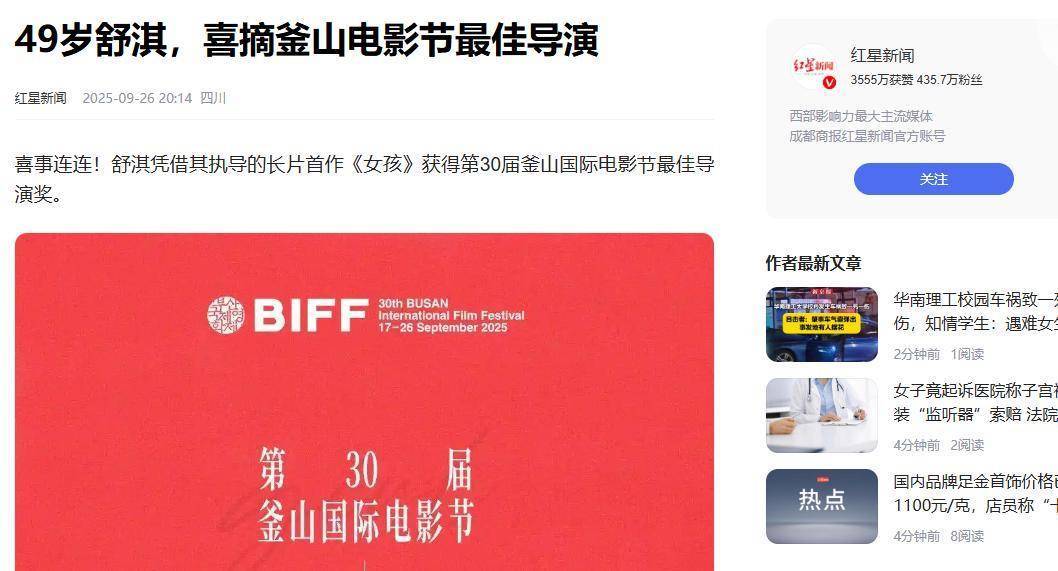 原来是舒淇首部自编自导的电影《女孩》荣获了第30届釜山国际电影节主竞赛单元最佳导演奖。